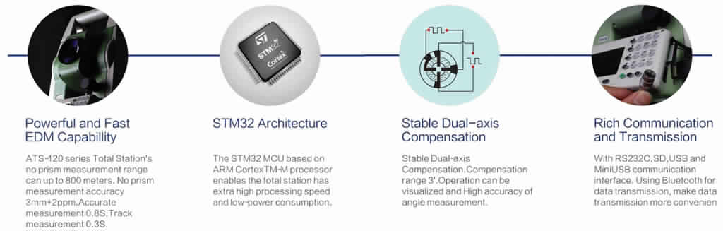 Total Station systems has the advantages such as high efficiency, simplicity and convenience in operation, low power consumption, small weight and sizes, an opportunity of use on a tripod, in a backpack.